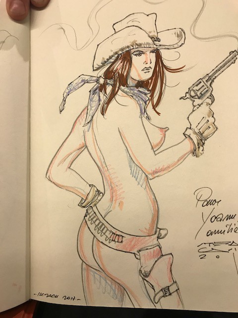 BÉDÈCINE inoltre è un festival pieno di italiani, e so già che incontrerò molti colleghi e con il quale faremo gruppo tipo: “italiani all’estero” e il mio francese sarà ridotto al minimo per le contingenze, mentre per le chiacchiere useremo l’idioma italico. L’entusiasmo di questi incontri non è tanto dovuto al solito modo di fare caciarone che ci contraddistingue, quanto al fatto che per molti di loro o ci vediamo oltralpe, oppure è difficile incontrarsi in Italia, perché qui sono conosciuti e lavorano anche con case editrici importanti, mentre in Italia la loro riconoscibilità è dovuta alla possibilità di vendita dei loro diritti d’autore per editori terzi, anche se oggi, quasi tutto viene ripubblicato anche sul nostro territorio nazionale. So già che ritroverò Matteo Alemanno con cui molto volentieri scambiamo i nostri punti di vista che spesso combaciano, Giuseppe Manunta che oramai si è fatto francese abitando, se non ricordo male, a Strasburgo, Theo Caneschi, Daniela Di Matteo, già incontrata a Lucca, Roberto Zaghi, Davide Fabbri, l’amico di tante scorribande Gradimir Smudja, Eugenio Sicomoro, Roberto Baldazzini, Gianluca Maconi, ed anche nuovi colleghi che non conosco ma che sarò ben lieto di farlo, insomma un’allegra brigata di italiani, la maggior parte invitata da Pierre Frigau, un oriundo sardo che collabora da anni con la manifestazione e che si occupa direttamente di invitare autori italiani, anche se io, in questo caso, l’invito l’ho ricevuto direttamente dall’organizzazione.