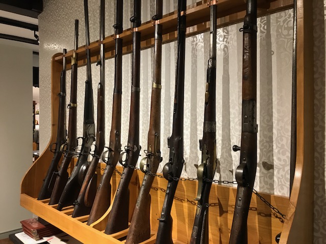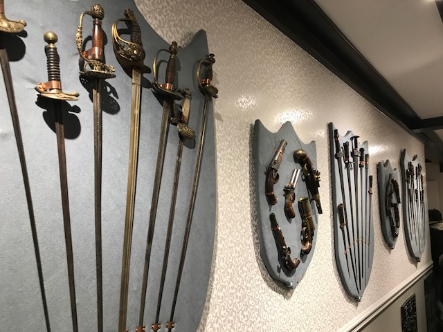 Armi nei corridoi interni dello splendido ristorante “l’Auberge” di Bollenberg, luogo della cena del sabato sera.