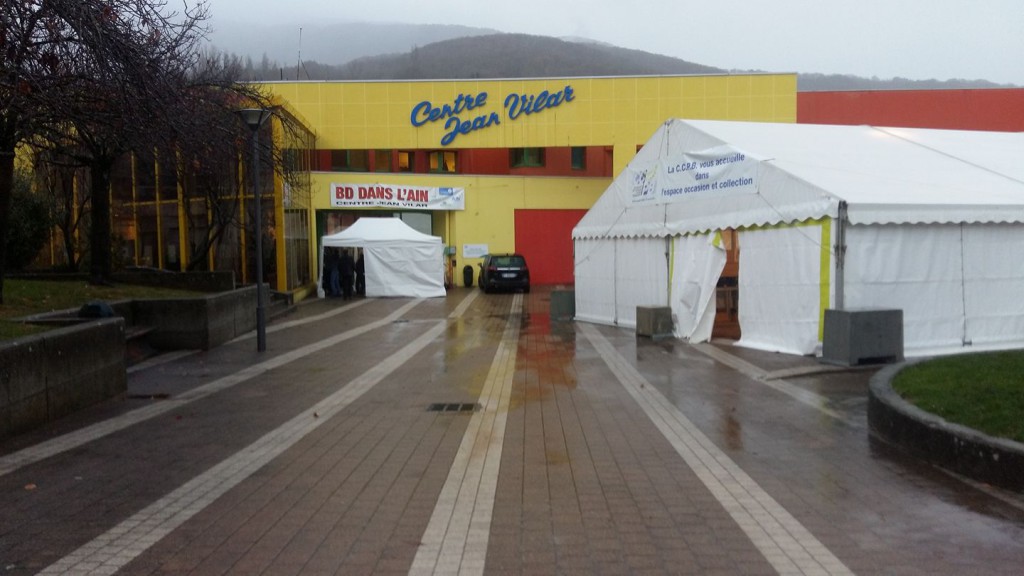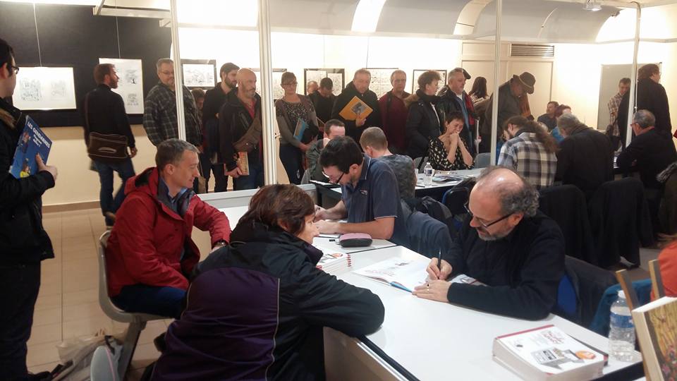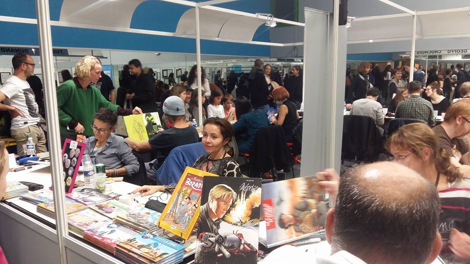 La mattina cominciamo sotto una pioggia battente, il cielo è di un grigio che non ci abbandonerà per tutta la giornata e, come si dice da queste parti, la pioggia aiuta allo svolgersi di questo tipo di manifestazioni, perché induce al riparo, a mettersi al chiuso, e quale migliore occasione per comprare fumetti e farsi fare delle dediche?