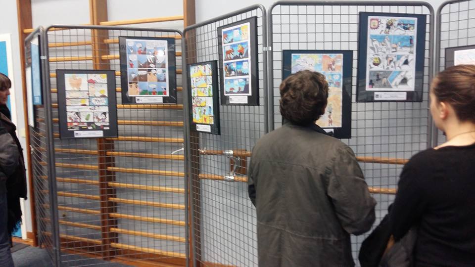 Due scatti raffiguranti l’esposizione dei lavori degli alunni delle scuole locali, e premiati nella giornata di Domenica, bella consuetudine che si rinnova in occasione di questi festival, dove i giovani studenti e potenziali nuovi lettori sono incentivati alla lettura e alla realizzazione di storie a fumetti. Un modo intelligente e produttivo per coinvolgere le nuove generazioni e mantenere un fresco interesse sul medium e sulla sua cultura.