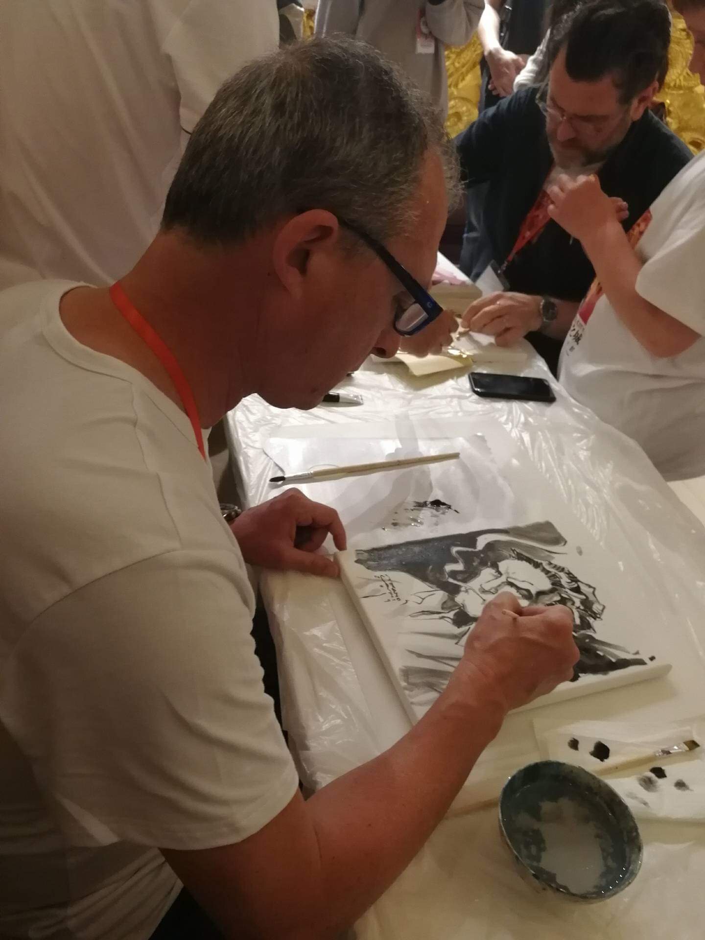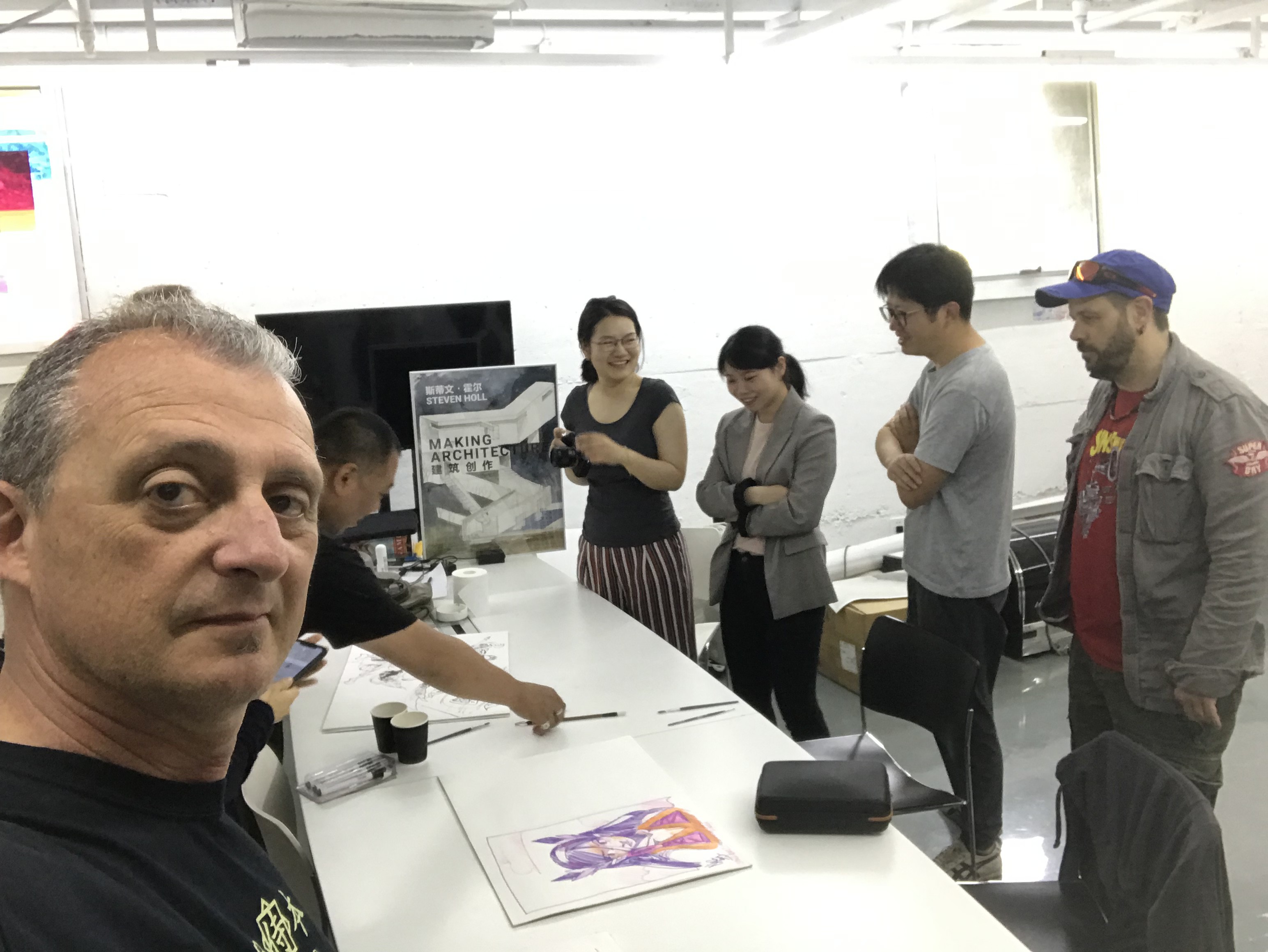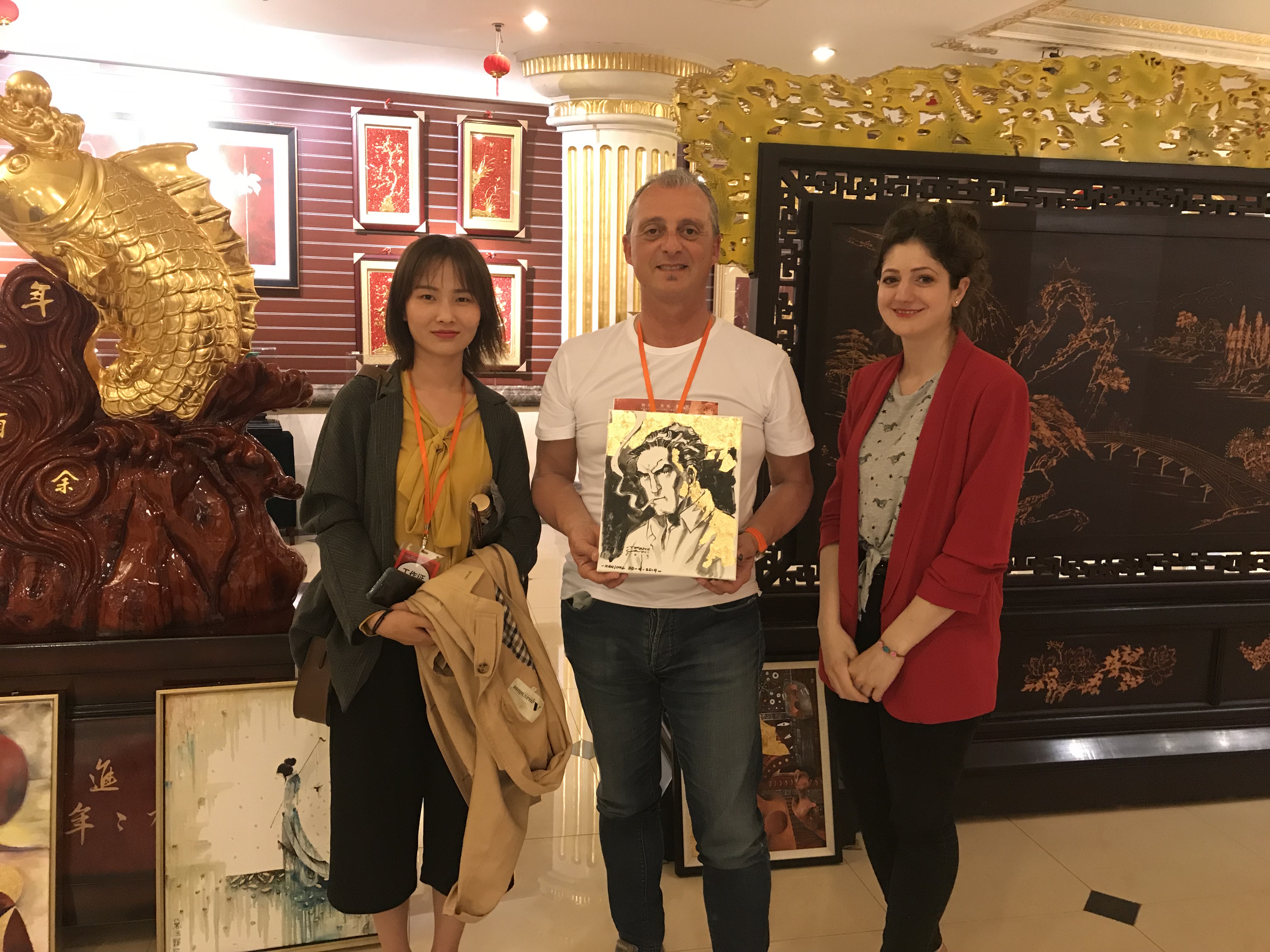 Oggi siamo liberi, almeno sulla carta, Wang ci ha detto che dovemmo fare un giro nel Museo d’Arte all’interno dell’albergo, per cui insieme a Nicolas e Wan Kwei ci dirigiamo con un pulmino elettrico della struttura all’entrata del museo, qui veniamo accolti ci n molto calore e veniamo fatti accomodare nei sotterranei, nei piani sopra stanno facendo dire lavori, e qui, alla fine, ci viene chiesto di fare un disegno da lasciare a loro.