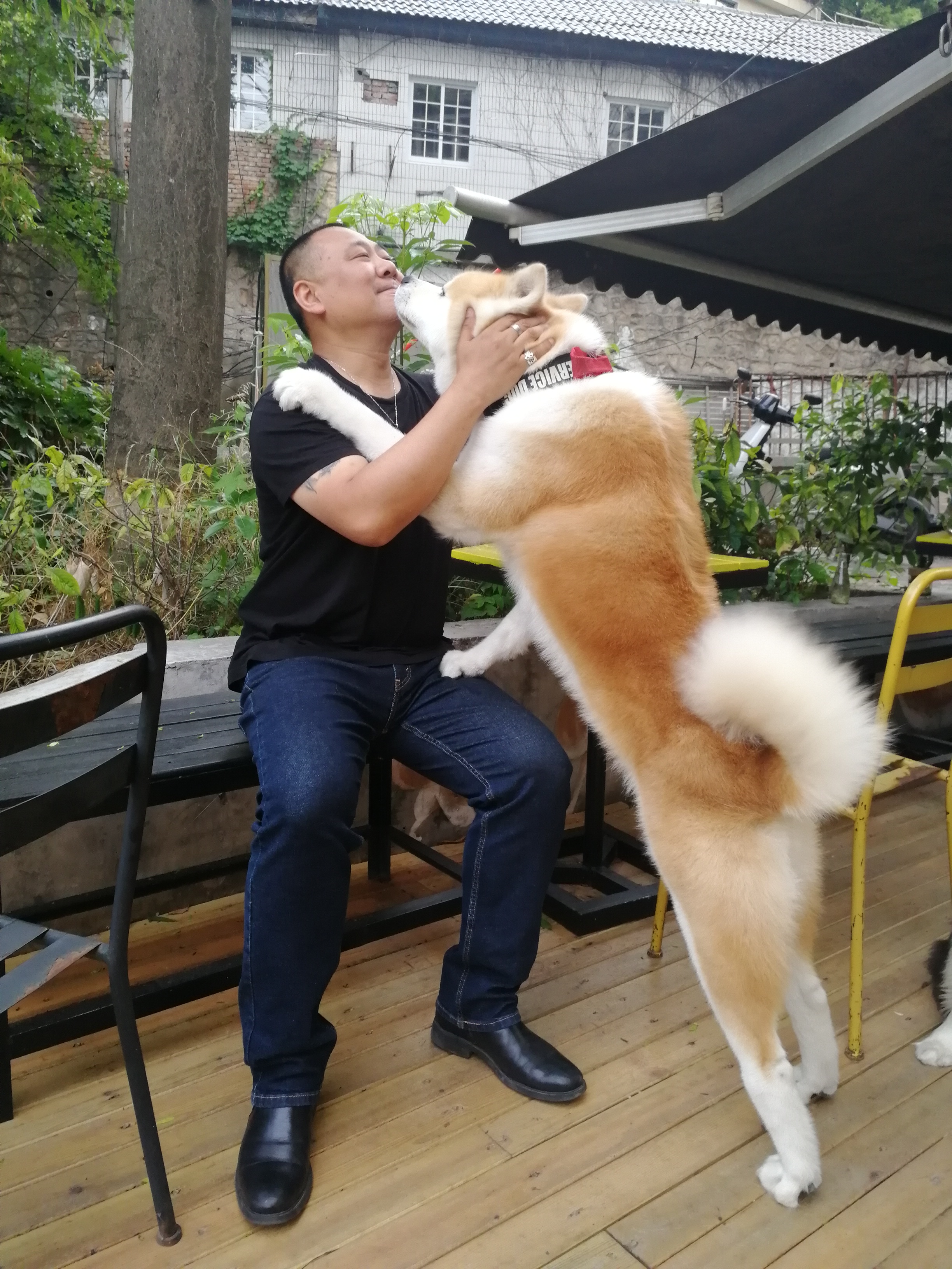 A spasso per la città, con breve sosta di ristoro, con Wangning slinguazzato da un bellissimo esemplare di cane dei titolari del baretto dove ci eravamo fermati.