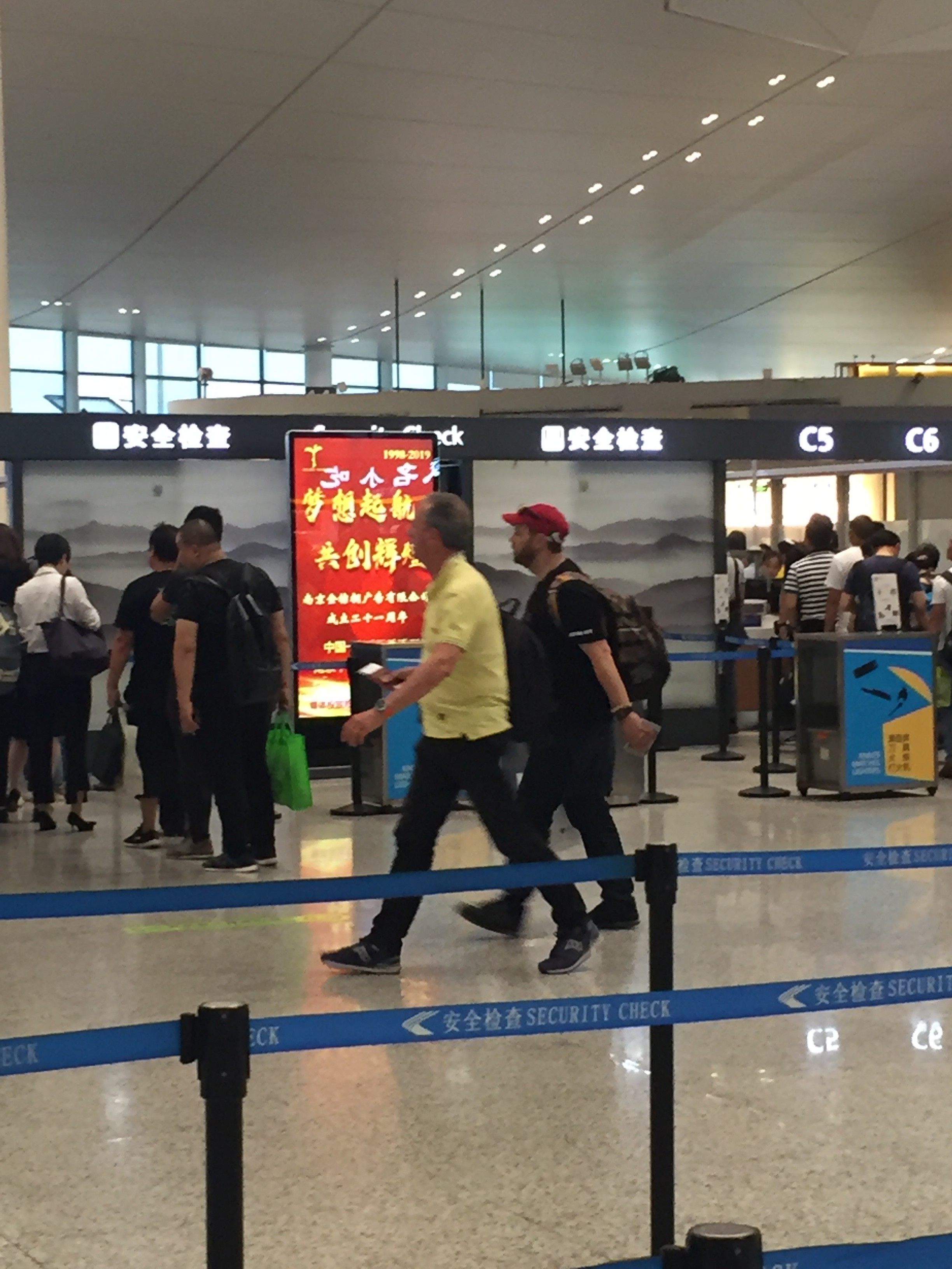 Comunque, io e Nicolas ci avviamo verso il Gate 20, da dove parte il nostro Boeing 737-800 per Pechino, lo spazio è ampio e i posti sono pochi, come prima tratta si prevede tranquilla, dovrò prendere tre aerei in sequenza: Nanjing-Beijing, poi Beijing-Francoforte e, arrivato qui, con uno scarto di appena un’ora dovrei prendere il volo finale per Firenze, se Dio vorrà farmelo prendere.