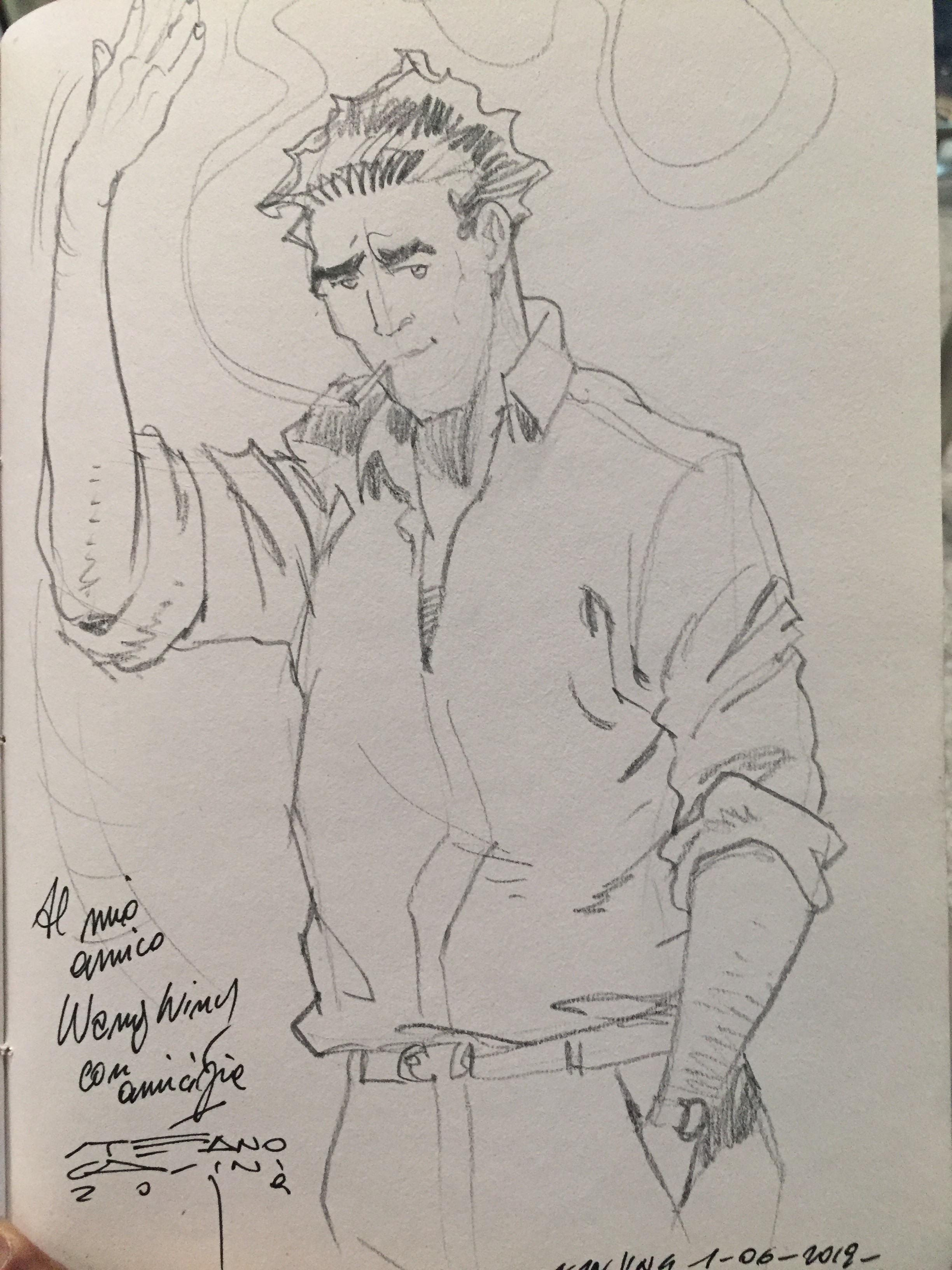 Stella è lì ad aspettarci, gli consegno il mio disegno che mi sembra apprezzi molto, almeno lo spero, il mio Nero Maccanti l’ho usato più volte, ma non l’ho accostato a molte donne, Stella è una di queste poche.