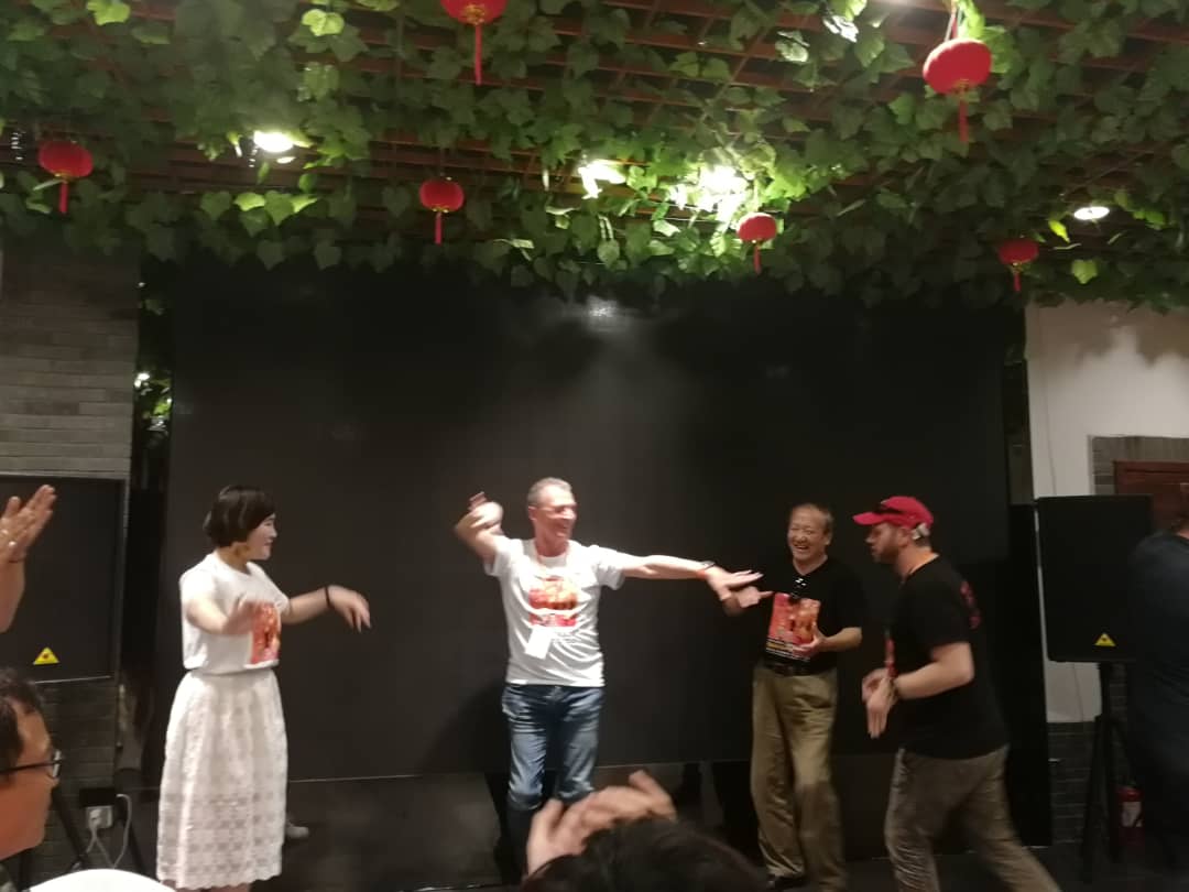 La cena trascorre tranquilla, e mangiamo normalmente, poi si comincia con le battute, ci vogliono far ballare, WAN Kwei si butterebbe. Pure, e allora una ragazza del gruppo (mi dice Stella di genia minoritaria) comincia a cantare e a ballare, ci guarda e ci invita, io non vorrei, ma vedo Nicolas vacillare, WAN che si alza e anche qui mica possiamo mica tirarci indietro.