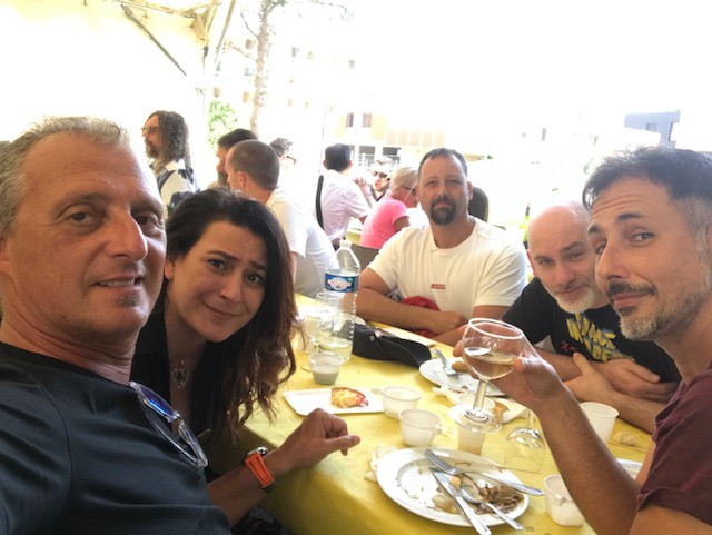 Il pranzo sotto il tendone e servito dal catering dell’organizzazione, al centro dei cinque, tra i soliti noti, Stefano Martino (foto messa appositamente per confermare la sua presenza al festival).