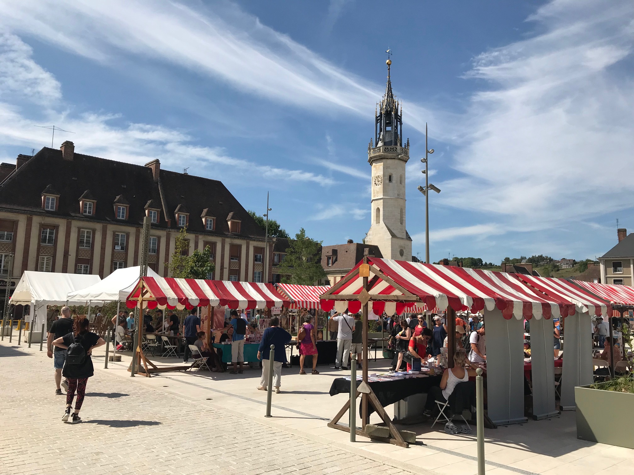 L’Hotel de la Ville (il comune) e la piazza allestita per la manifestazione, una bella esposizione al sole  splendente della Normandia che per l’occasione ha dato il meglio di sé.