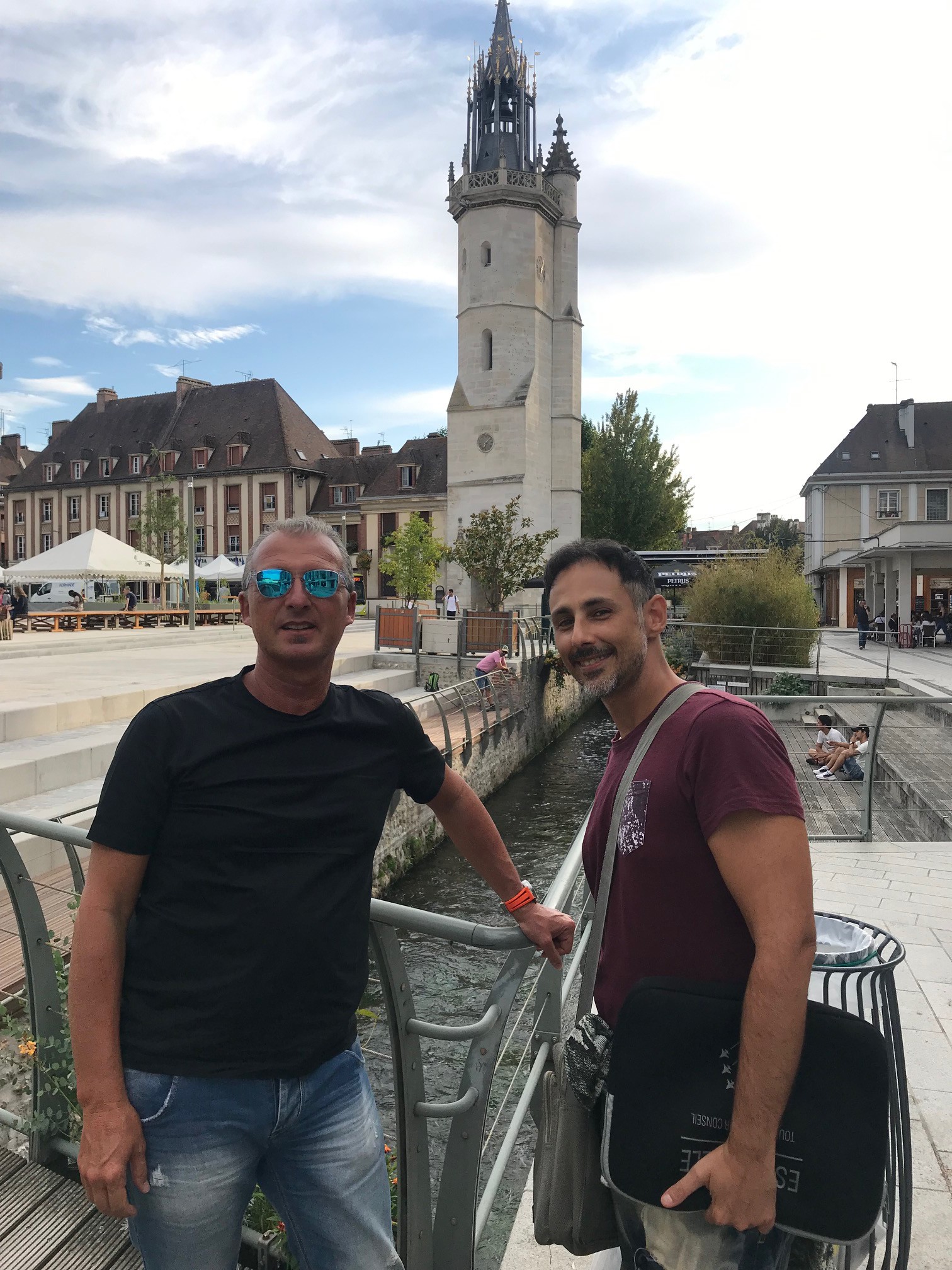 Con l’amico Olivier Noyon, al momento dell’arrivo, di fronte all’hotel.