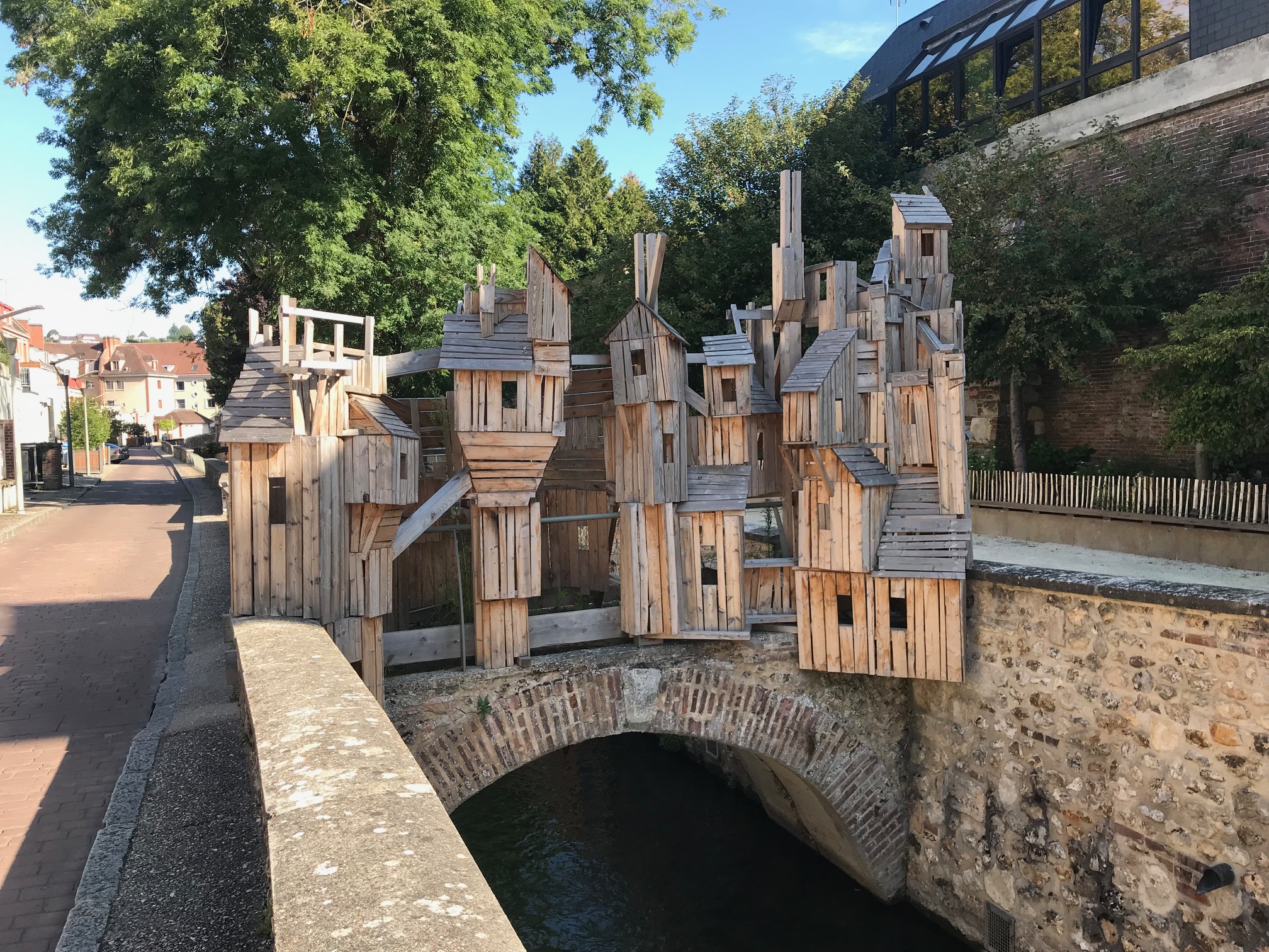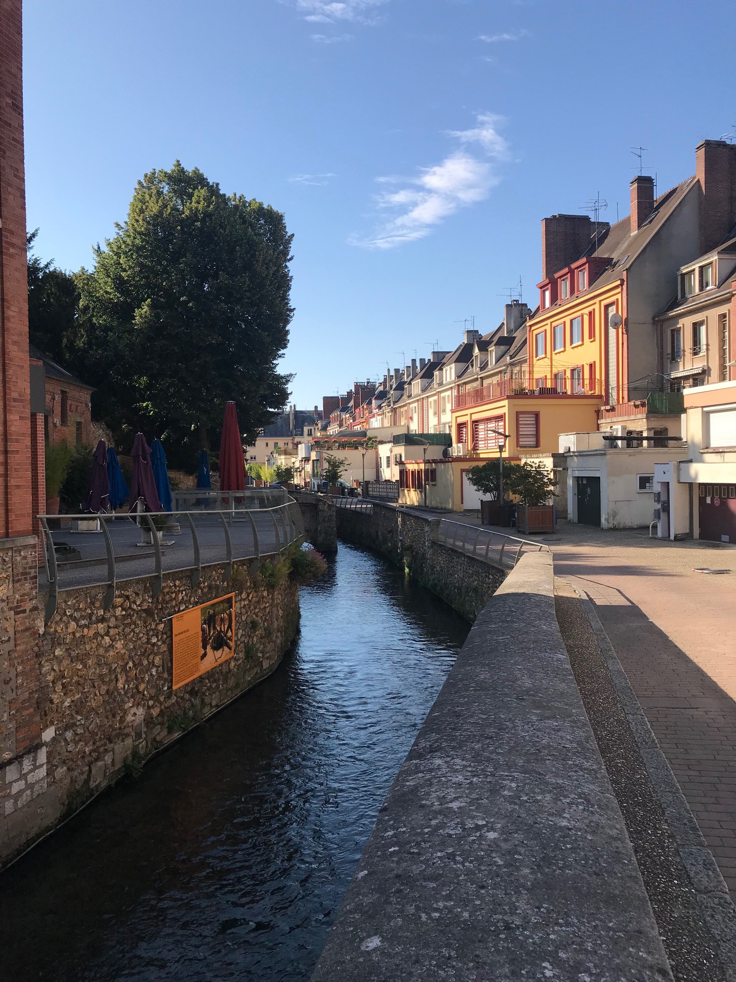 Al centro città, ma lo scoprirò soltanto nel pomeriggio, i cantieri di lavori in corso sono ovunque, qui i lavori pubblici marciano evidentemente a gran ritmo e tutto ruota intorno alla costruzione di argini e una spiaggetta che lambisce un piccolo torrente che è incastonato nel centro della città, ma è così piccolo e ben inserito nel l’arredo urbano che me ne accorgo solo a fine serata. Il centro di Evreux è carino, ed ha diversi localini, l’architettura è una miscela di vecchie costruzioni (poche), e nuove (la maggior parte), in un mix gradevole e ordinato.