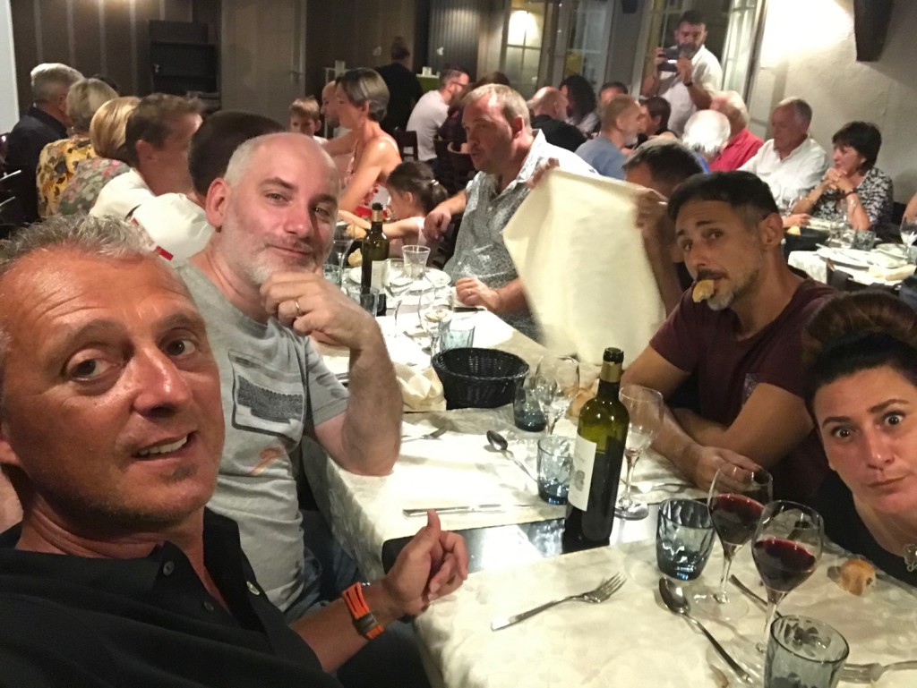 A cena Simona Mogavino ed Alessio Lapo mi hanno lasciato un posto accanto a loro, c’è anche l’amico Vincenzo Cucca e cominciamo subito a parlare tra di noi (quando siamo tra italiani, visto le rare occasioni di incontrarci, gli altri praticamente non esistono), trascurando un po’, lo confesso, Michel Pierret e la moglie Marick Bouvay, accanto a noi, anche se la cacofonia del locale rende comunque molto complicata la conversazione.