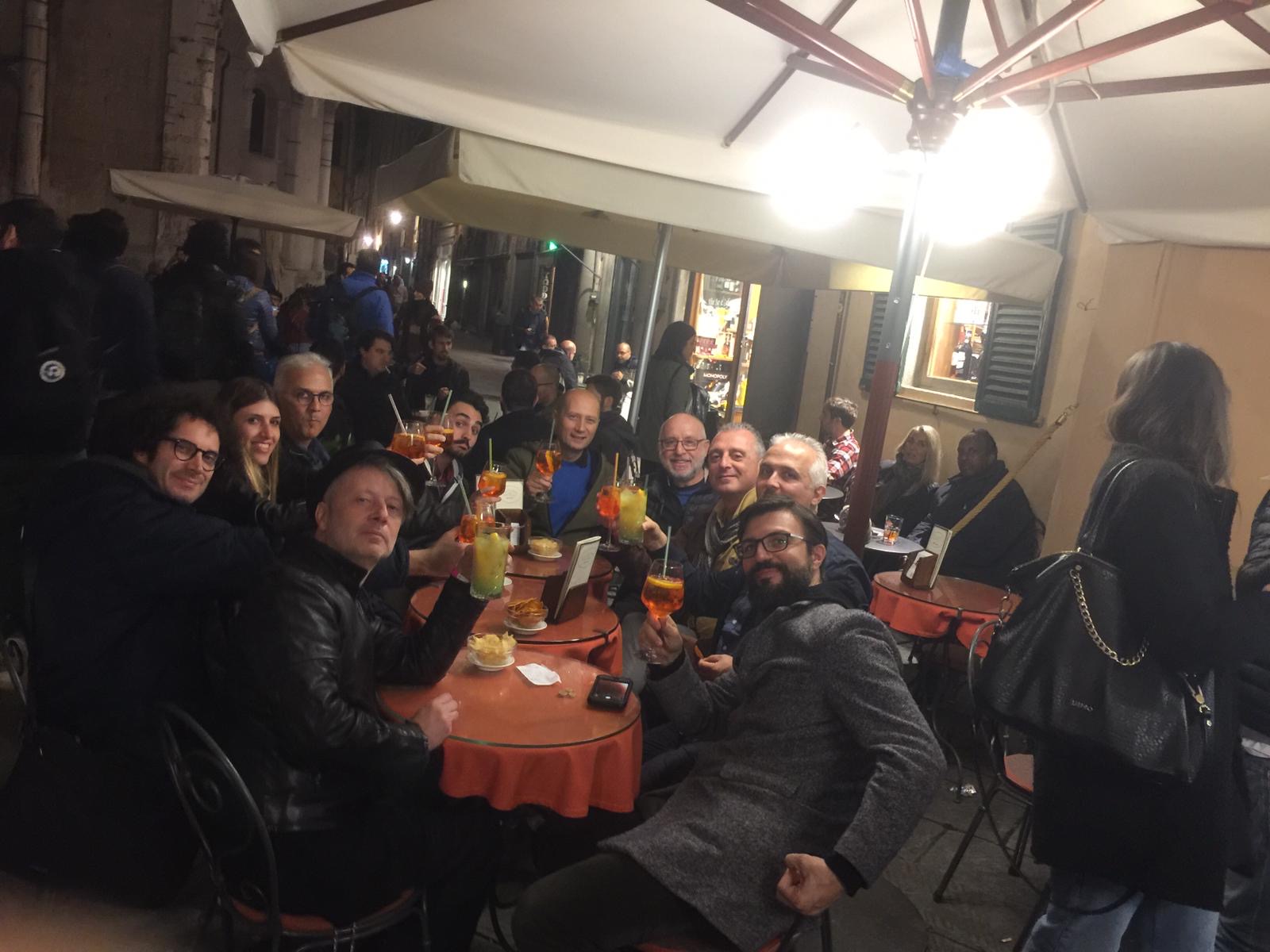 Aperitivo al solito bar in piazza San Michele, da sx in senso orario: Luca Brandi, Francesco Chiatante, Laura Lavorini, Carlo Chiarotti, Domenico Russo, Fabrizio Pacetti, Steve Schanes, io, Luca Chiarotti e Francesco Mariotti.