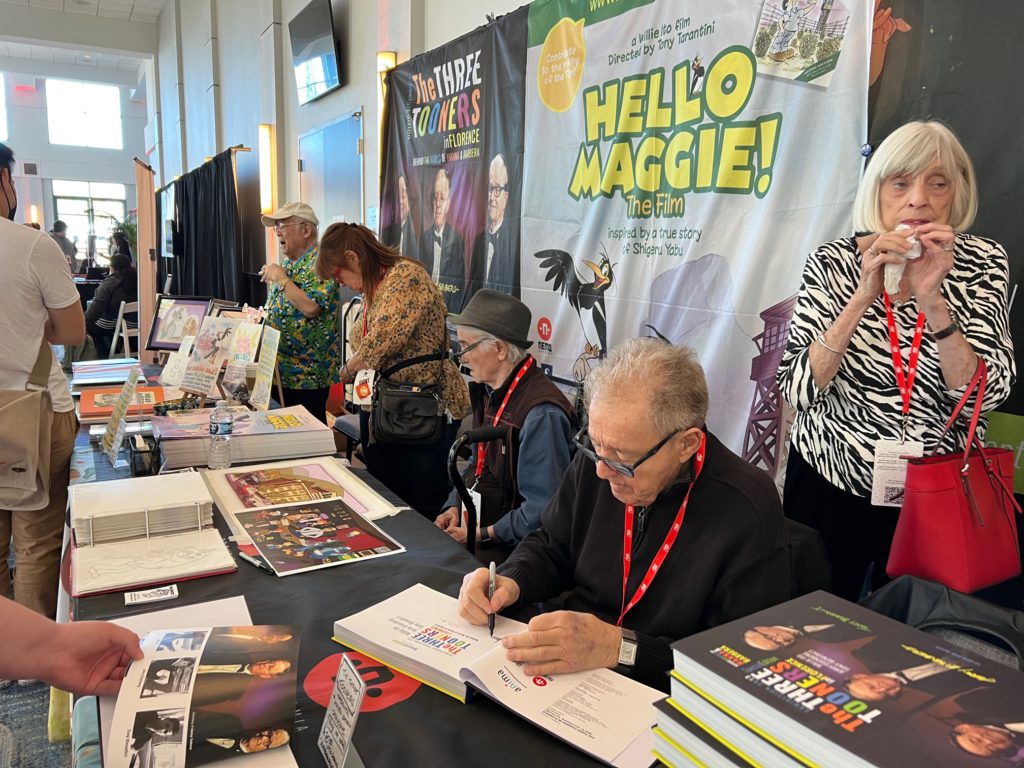 È il giorno dell’inizio del CTN, praticamente la vera ragione per cui abbiamo intrapreso questo viaggio, se non fosse che ci abbiamo accorpato parecchi giorni di vacanza, inclusi gli incontri con i Three Tooners per le interviste da fargli per una collana di libri che vorremmo realizzare con loro. Ultima sistemazione dello stand, con l’esposizione dei libri che abbiamo editato, e lo spazio relativo lasciato a Willy Ito, Toni Benedict e Jerry Eisemberg, tre leggende dell’animazione che saranno ospiti fissi della manifestazione.