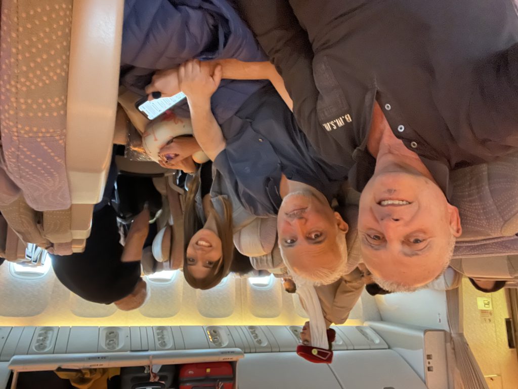 Con Luca e Laura (e Carlo indaffarato col bagaglio), in volo su Emirates.