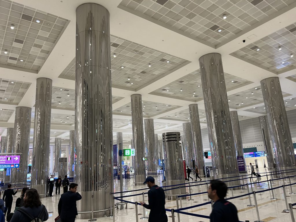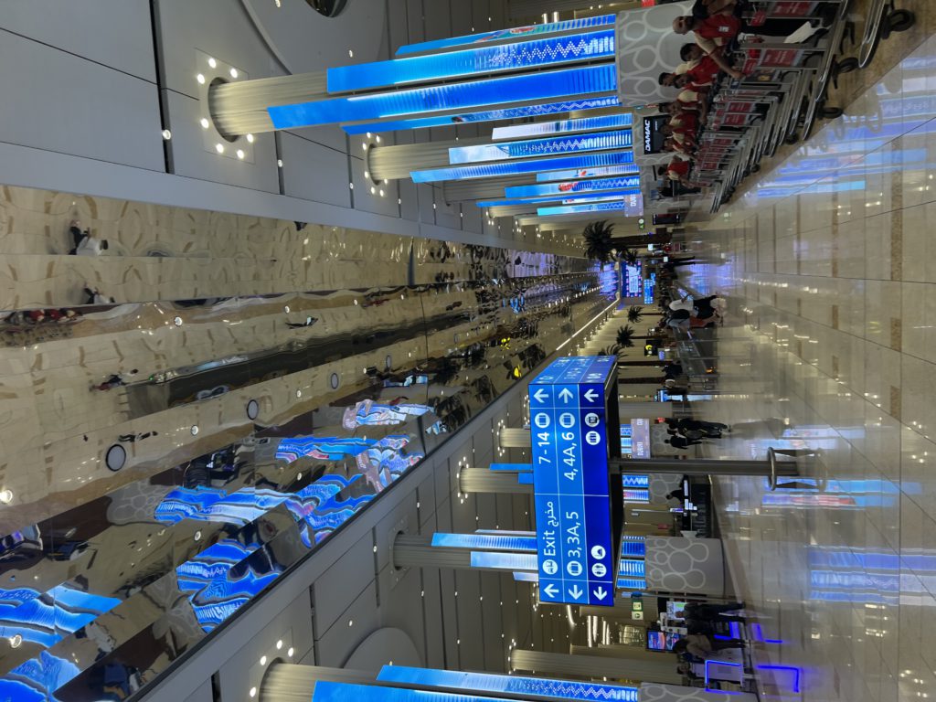 L’arrivo a Dubai è in tarda nottata, qui i sono due fusi orari in più, e sono le 11,30. L’aeroporto é in stile mediorientale, ampio, sontuoso, pieno di colonne, marmi e superfici riflettenti. Noi siamo in tutto quasi una cinquantina, un bel numero da gestire.