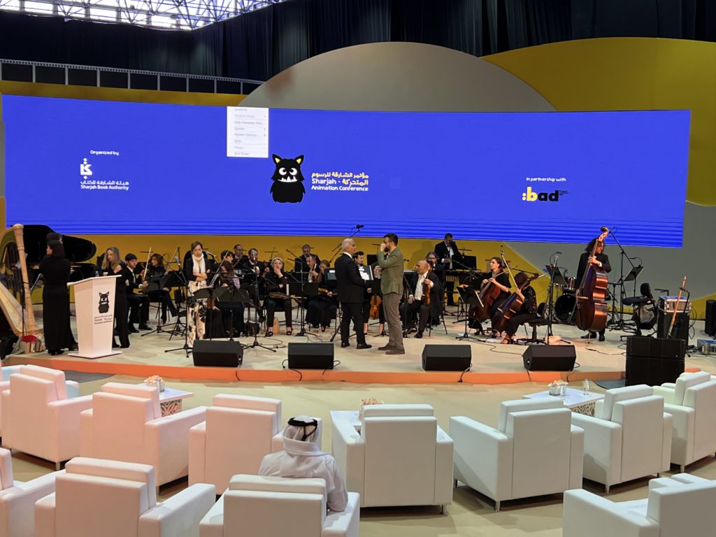 Gli enormi spazi della Sharjah Animation Conference, il corner dell’Accademia Nemo e la mostra dedicata allo Studio Bozzetto.