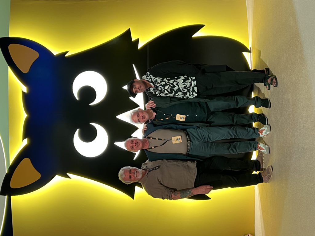 Robin Linn, il sottoscritto, Luca e Jamil davanti alla mascotte della manifestazione, creata dallo Studio Bozzetto.