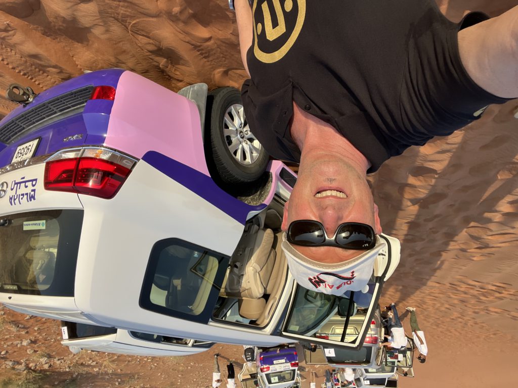 Alle 12,00 rendez-vous all’albergo dove veniamo intruppati nel più classico dei pullman seightseeing a due piani, per turisti, dove partiamo in direzione del deserto.
