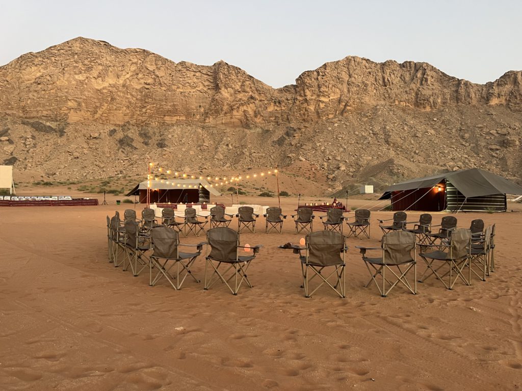 Attendiamo lo sceicco per oltre due ore, poi arriva con tutta la corte al seguito, siede sulle bianche poltrone in pelle disposte a semicerchio intorno al palcoscenico, ascolta la presentazione di Pietro Pinetti (CEO di Movimenti e direttore del BAD, che patrocina insieme all’istituzione locale l’evento) e della corrispettiva locale, una responsabile della manifestazione, ascolta il concerto lungo circa una mezz’oretta, non saluta nessuno e se ne va.