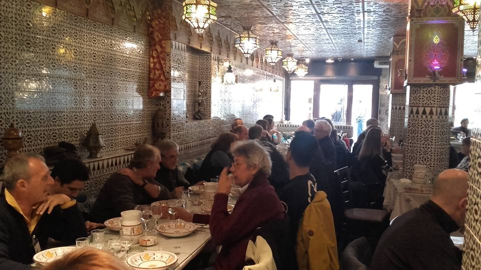 A cena invece du Petit Lac, consueto appuntamento degli ultimi anni, che pare sia stato venduto, si va al restaurant Le Grand Soleil, in pieno centro, il locale è carino, attendiamo un po' gli ultimi arrivi della serata: Rubén Pellejero e la moglie Mercedes, il disegnatore Bosch, Mandryka, e poi iniziamo a cenare. Joel Alessandra ha declinato all'ultimo momento l'invito, peccato, mentre il povero Tisselli è stato tradotto in Germania, a Francoforte dove dovrà attendere per sei ora la coincidenza suo malgrado, arrivando a notte fonda. La serata tuttavia è guastata dalla confusione di un gruppo di trentenni che festeggiano un compleanno, sono una dozzina e fanno un casino infernale, e poi si dice gli italiani... al nostro tavolo tra catalano, italiano, cinese ed il francese sembra di essere ad un congresso dell'ONU, si fa fatica a parlare, ad ascoltare ed a a mantenere la concentrazione, mi assento un po' isolandomi tra una chiacchiera e l'altra, io inoltre mi sono alzato alle cinque, ho preso nell'ordine treno, aereo e automobile, praticamente l'intero parco di mezzi semovibili creati dal genere umano e sono stanco, che dite?