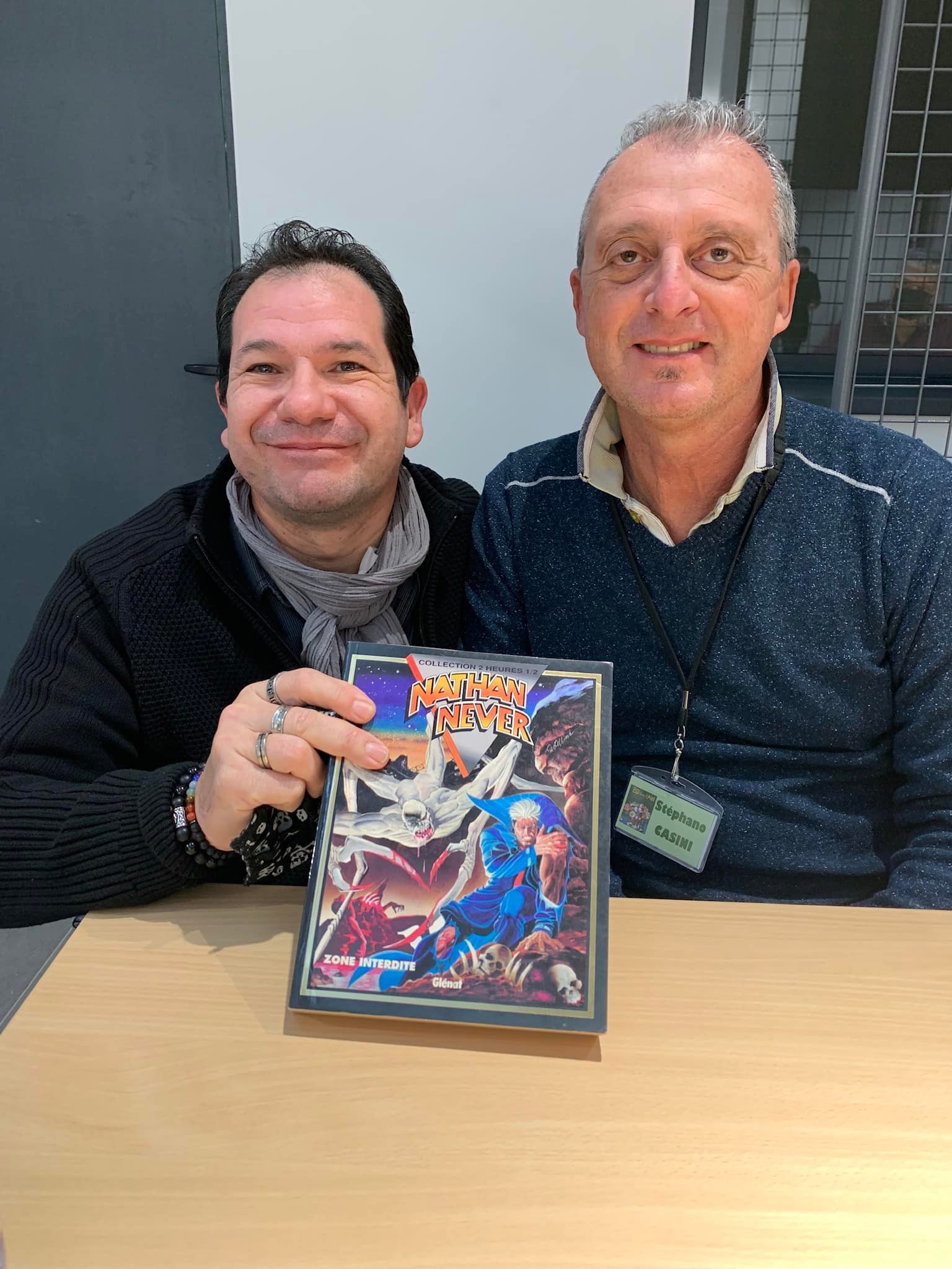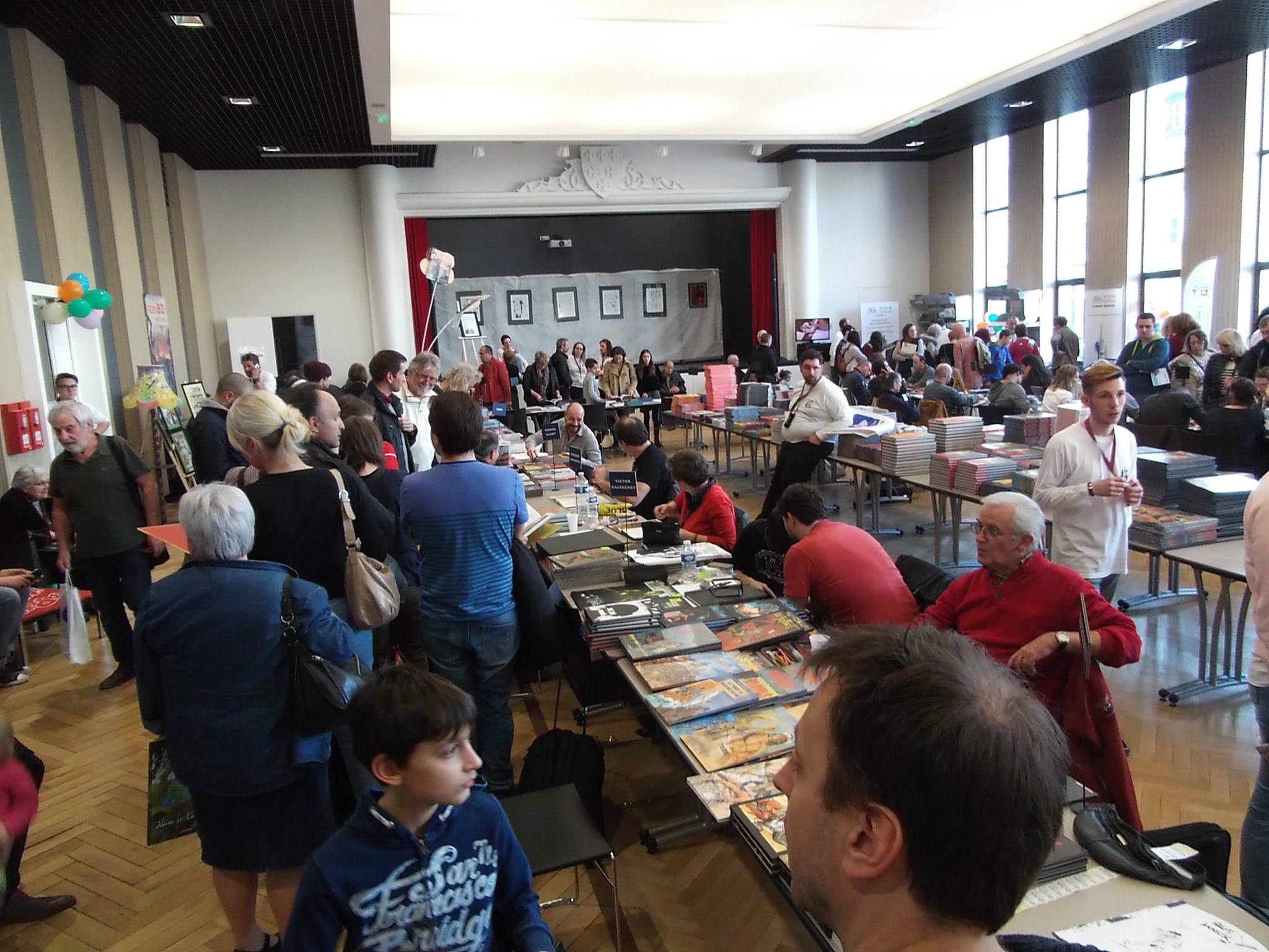 Alla manifestazione partecipano colleghi che conosco da tempo, ed è un piacere ritrovare Pixel Venguer, un autore molto interessante ed innovativo che conobbi a Brignais quasi una decina di anni fa (ed il piacere ulteriore è quello di constatare che anche lui si ricordava piacevolmente dell'occasione), ma divido quasi tutto il mio tempo con l'amico Tarek, sceneggiatore ed artista poliforme di una simpatia esuberante e che adesso si dedica perfino all'Arte con la "A" maiuscola, proponendo i suoi dipinti di fattura etnico-metropolitana in gallerie, e il sodale Vincent Pompetti, un bravissimo disegnatore di origine abruzzese e che adoro per la semplicità, la modestia e la pacatezza, un amico con il quale adoro intrattenermi perché ha la splendida capacità di rilassarmi con la sua calma, e anche con Alexis Nolent in arte Matz, lo sceneggiatore molto conosciuto ed apprezzato, salito alla ribalta perché da una sua storia, qualche anno fa, venne estratto un film (Jimmy Bobo - Bullet to the Head) che venne prodotto da Hollywood ed interpretato da Sylvester Stallone.