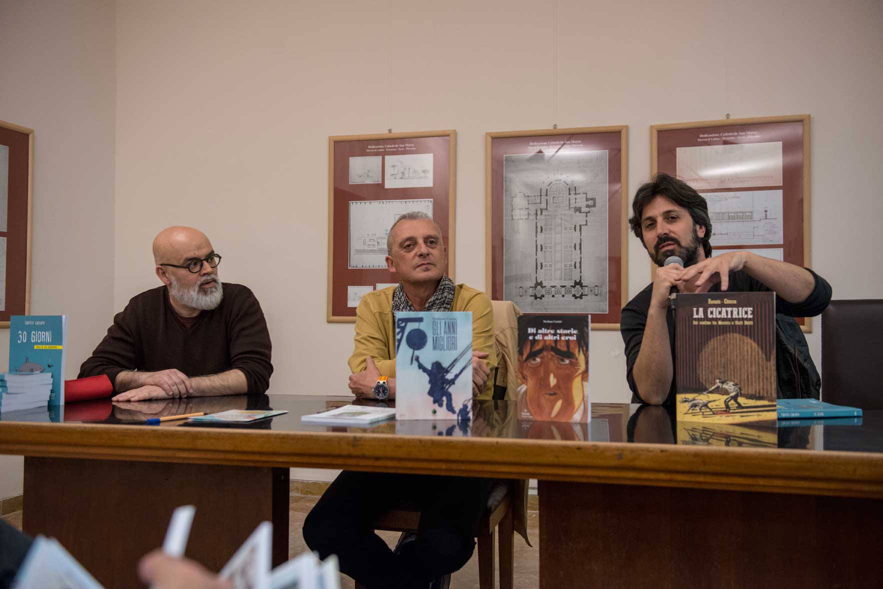 Mi avvio verso piazza Antelminelli, e mi dirigo verso il bar “Undici undici”, é qui che ho il rendez-vous con gli amici degli “Gli Audaci”, un sito di fumetto che mi aveva già intervistato anni addietro anzi, che in occasioni dell’uscita de “Gli anni migliori”, mi aveva assegnato un premio come migliore libro di Lucca di quell’anno, e cioè il 2018.