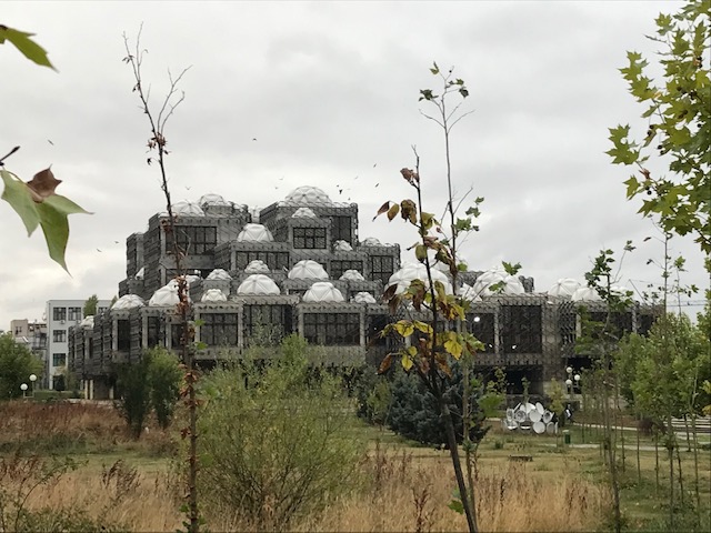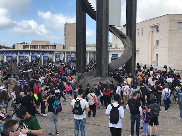 Poi di corsa a piazza Anfiteatro dove Michele Medda and family mi stavano aspettando per il pranzo, una piazza -un tempo abbastanza isolata ed oggi, quasi come ogni altra occupata installazioni- dove al centro svettava incubo nero come quello della Mecca dove, dopo una serie di serpentine, i pochi avventori che ci si avventuravano, venivano inghiottiti all’interno delle sue viscere. Un ora e mezza di conversazione e un pranzo leggero (oramai sono completamente padrone dei miei istinti animali), e poi il rientro allo stand.