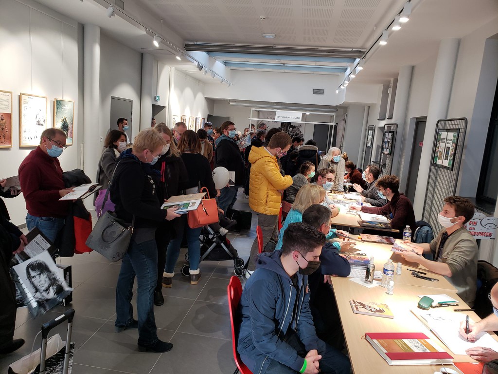 La mattinata vola via così, veloce come la precedente, una dedica dietro all’altra fino alle 12,45. Arriva anche Paolo Martinello a dare manforte a me e Daniele Serra.