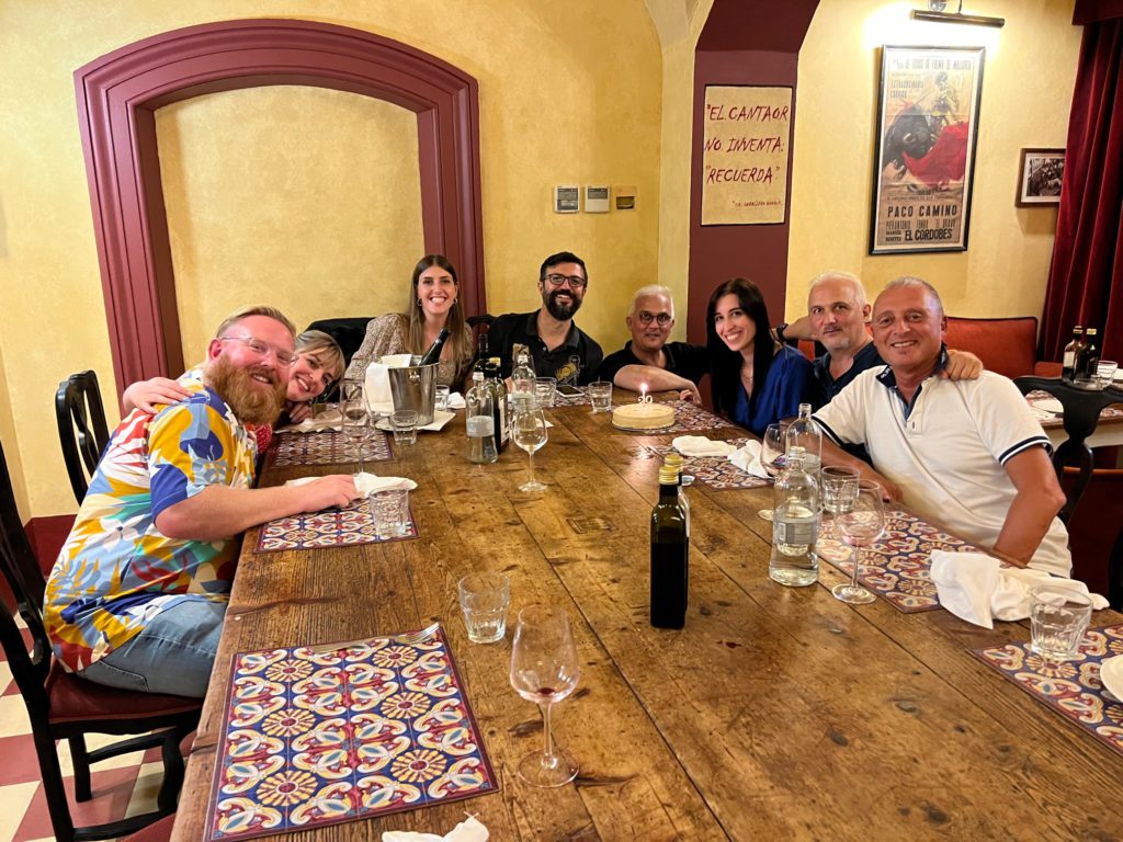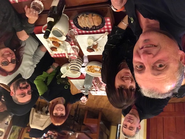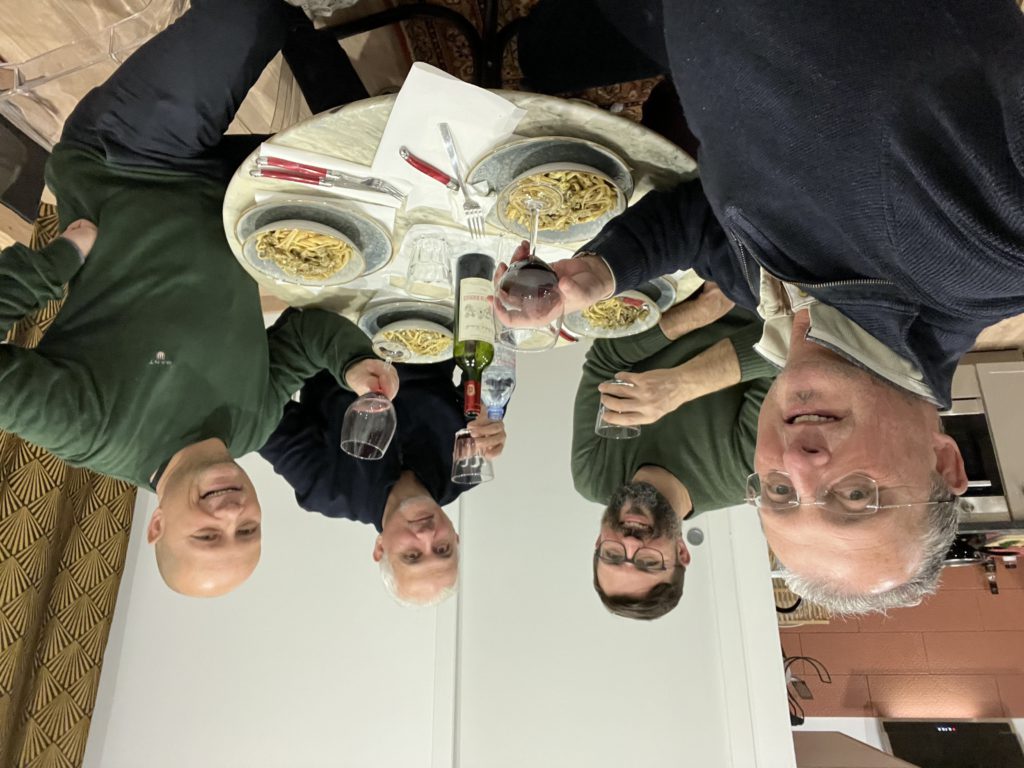 I commensali della serata di mercoledì, in senso orario: il sottoscritto, Riccardo Moni, Daniele Serra, Francesco Barbieri, Clyde Canella e Piero Ruggeri.