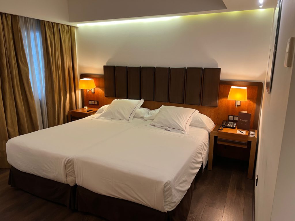 Pochi minuti per apprezzare la bellezza è la ricchezza degli arredi della camera dall'ampiezza di un monolocale, del resto il nostro hotel ha ben quattro stelle meritate che punteggiano il blasone all'esterno dell'ingresso, con tre belle e luminose finestre che danno su un interno tranquillo, un bagno dotato di vasca oltre che un ampia doccia, un letto sovrastato da una quantità di piumotti e cuscini che al momento di andare a letto m'impegneranno non poco nello smontaggio dell'intera struttura, ma che nell'insieme è proprio un gran bel vedere.