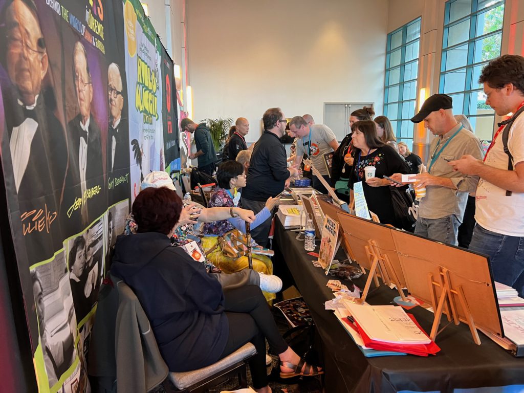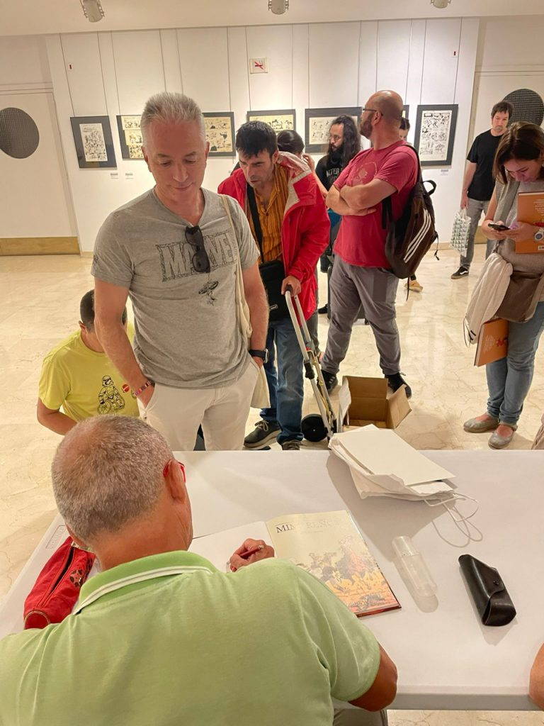 È una simpatica chiacchierata sul fumetto, un rito che continuerà senza soluzione di continuità per tutta la giornata. Vi giuro, da non poterne più. Per carità, non fraintendetemi, non mi sono mai sottratto con chiunque mi coinvolgesse in un discorso, ma vi garantisco che, a fine giornata ho detestato anche il solo suono della mia voce e qualsiasi cosa che dicessi.