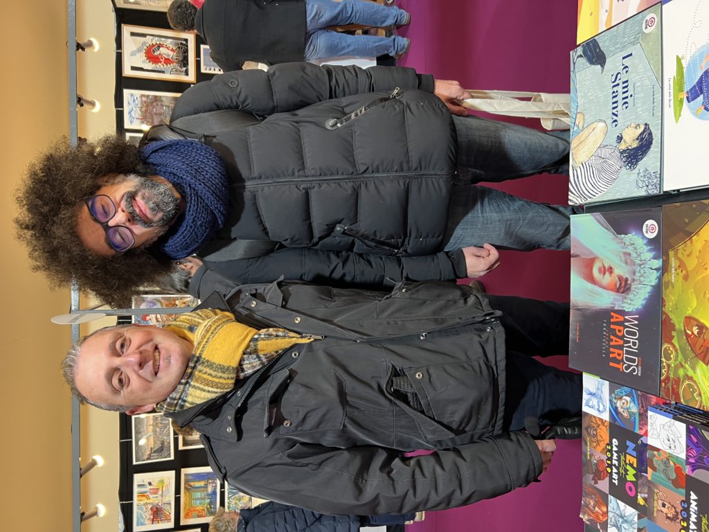 Col biglietto sull’IPhone, riusciamo ad entrare nel padiglione Giglio dove gli stand sono ancora in via di allestimento, incontro Fabio Celoni che si sta sistemando il suo, e poco distanti Piero Ruggeri e Francesco Barbieri che stanno montando le vele del loro stand per le commissions. Sono habituè di fiere e mostre e sono una coppia ormai di fatto, sia per l’amicizia che per affinità elettive e per somiglianza fisica. Abbiamo deciso che mercoledì sera andremo a cena insieme, e così tutte le sere sono impegnate, salvo…