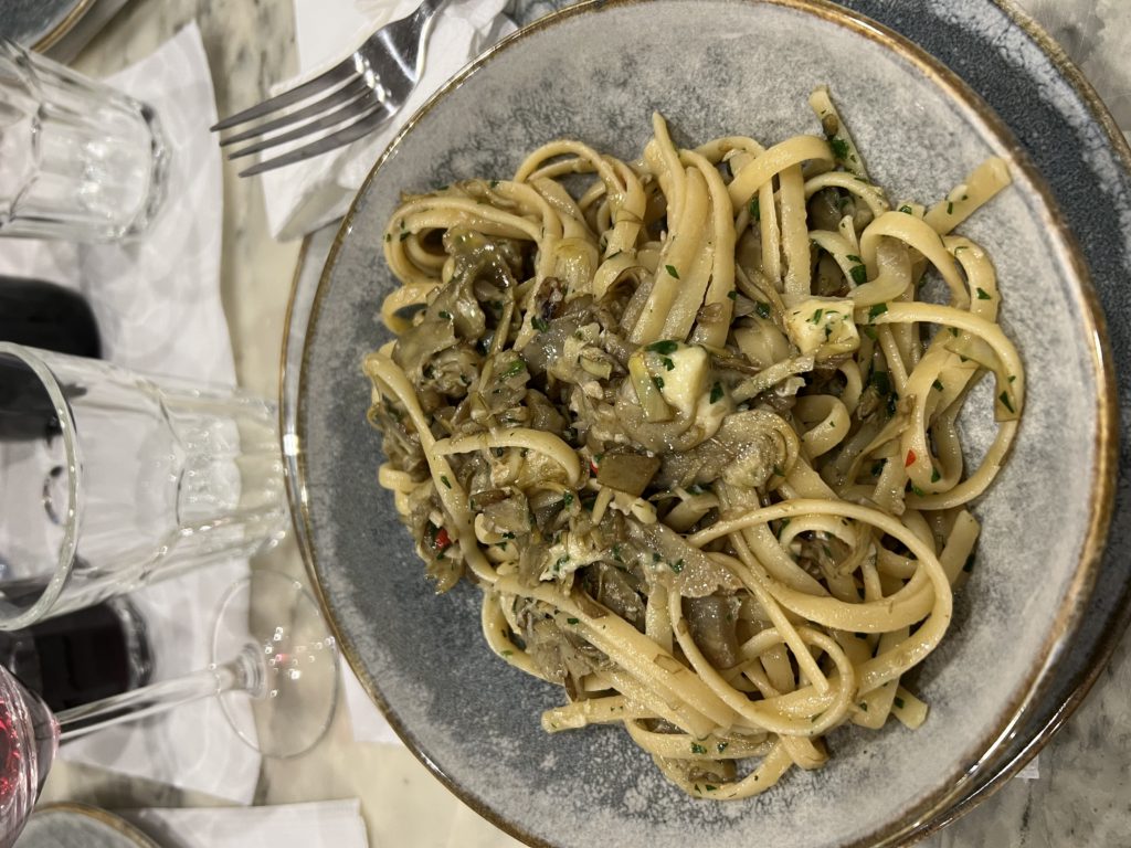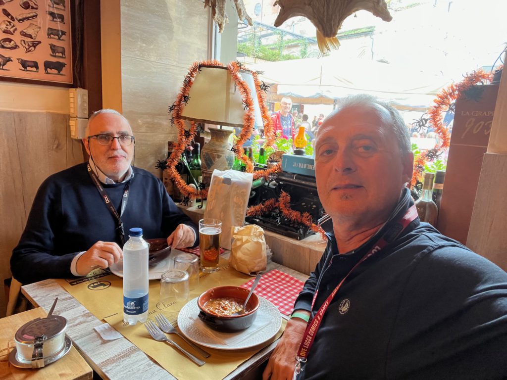 Il ristorante, nonostante l’ora, ha due posti a nostra disposizione, a pranzo i partecipanti alla manifestazione preferiscono panini al sacco e pranzi veloci, per cui le file sono nei bar, nelle pizzerie e nei localini di questo tipo, mentre i ristoranti sono presi d’assalto più la sera, quando ci si riversano tutti gli addetti ai lavori che restano per il pernottamento, ed è difficile trovare posto senza una prenotazione.