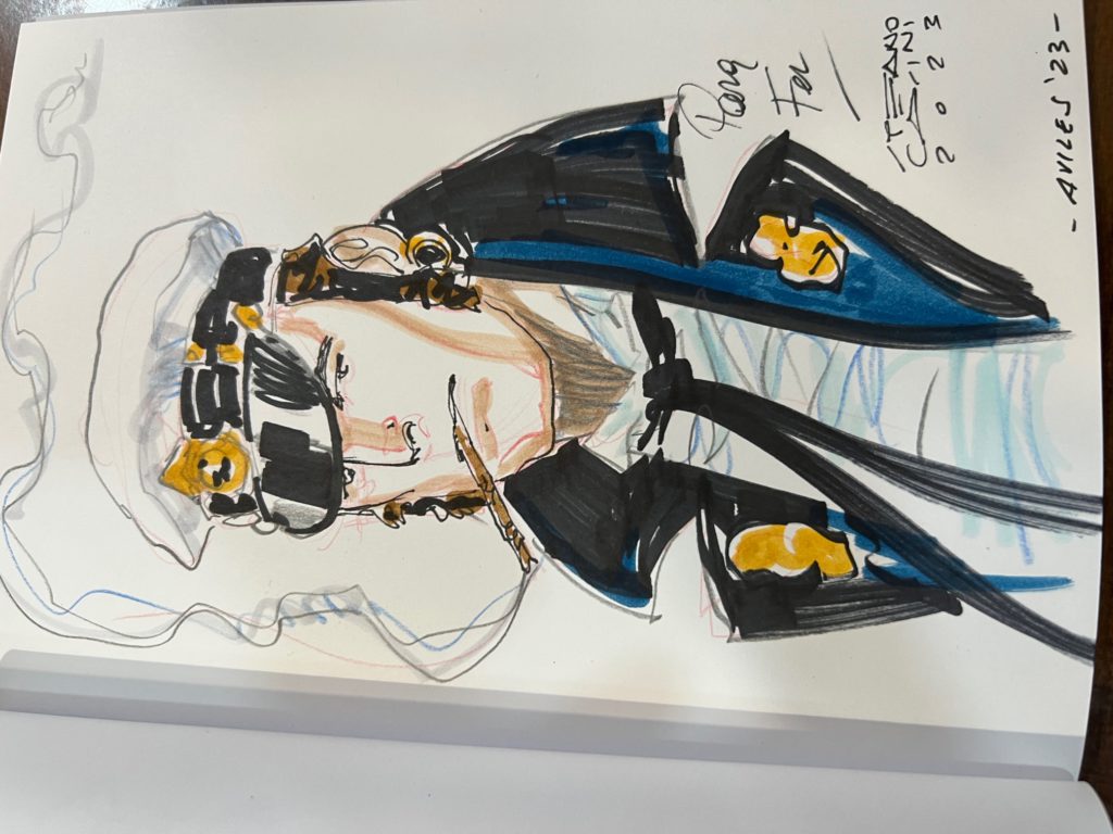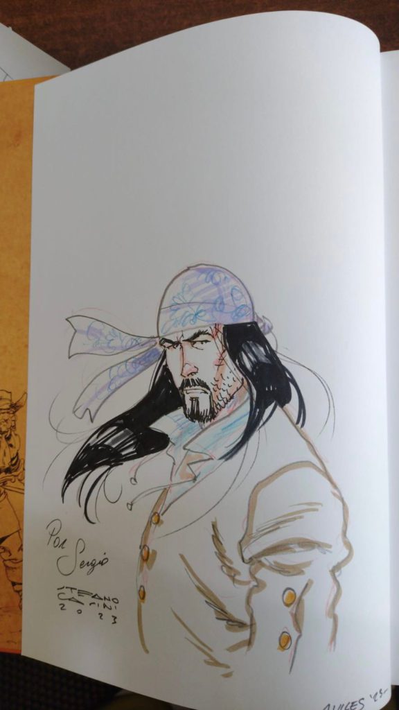 Ma guardiamo il lato positivo, è stato sicuramente bello è gratificante il contatto con i lettori, è stato sicuramente bella l’atmosfera respirata in un paio di cene, una delle quali mi ha ricordato quelle di Bonelli, le cene ufficiali in cui noi disegnatori ci ritrovavamo insieme e condividevamo i nostri punti di vista. Non che sia stata una cena con molti autori, ma il tasso di appassionati, il numero copioso degli intervenuti e la goliardia che si è respirata è stata piacevole.